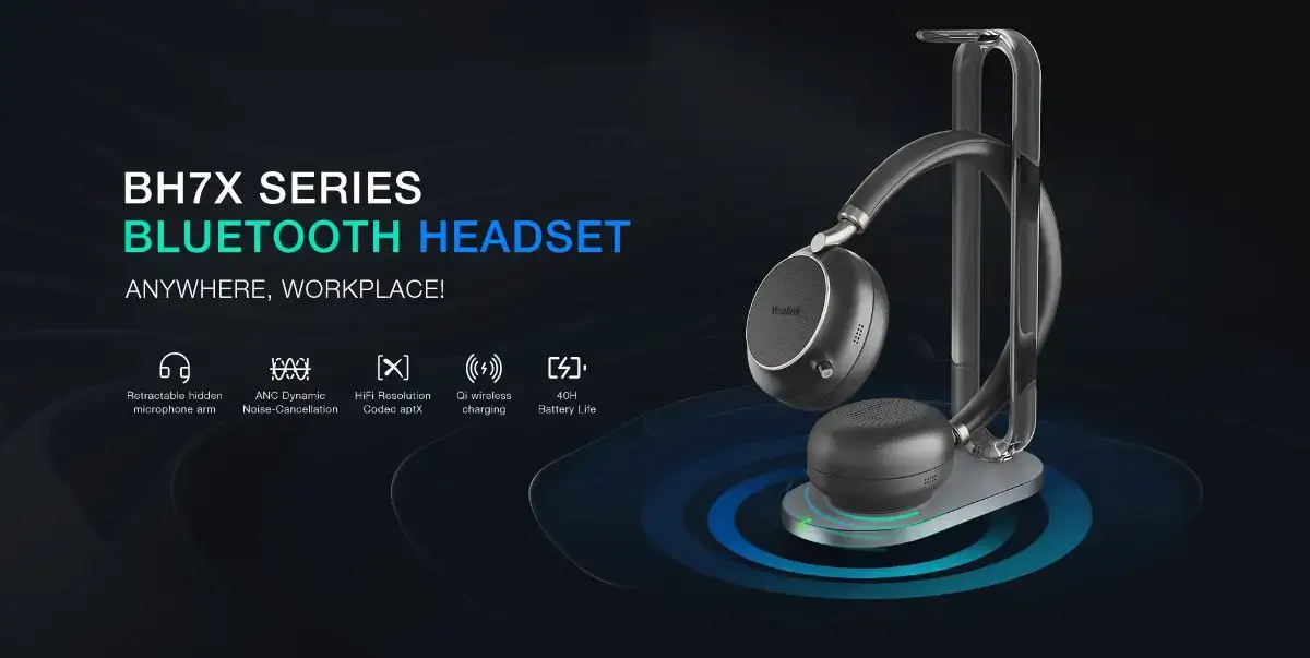 YEALINK BH76 Teams Black USB-A, Wireless Bluetooth, Dual, On the ear wearing style, ANC, USB-A Dongle Included-Teams