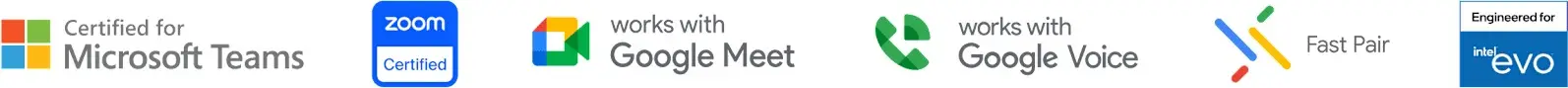 Zone Wireless 2 is certified for Microsoft Teams as a Premium Microphone for Open Office. It’s certified for Zoom, Google Meet, and Google Voice with the plug-and-play receiver. It supports call controls over native Bluetooth for Google Meet19For UC version only. Requires ChromeOS version M127 or later and select Chromebook platforms. and is certified for Microsoft Teams over native Bluetooth20Requires Windows 11 and the new Microsoft Teams app. For native Bluetooth connection only.. It also meets the strict requirements of the Engineered for Intel Evo Laptop Accessory Program21Requires Zone Wireless 2 firmware version 1.3.72 or later, ensuring exceptional audio experiences, seamless connectivity, and reliability while connected to an Intel Evo laptop over native Bluetooth. All versions are certified for Fast Pair.