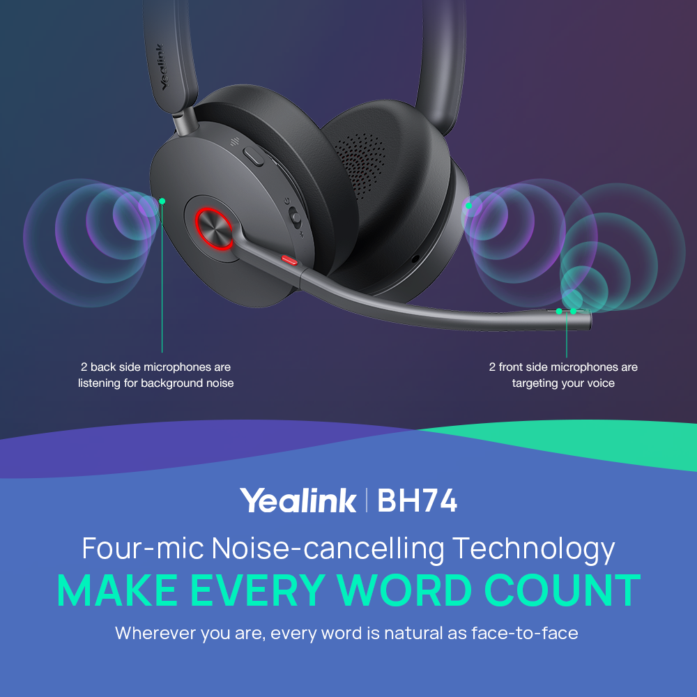 Experience the BH74’s Hybrid Active Noise Cancellation, featuring four microphones and a specially ear-fitting design that dynamically reduces ambient noise, helping you stay focused and achieve peak productivity anywhere.