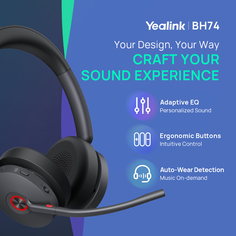 Yealink BH74 Dual Bluetooth Headset, Teams Certified, USB-C/A Connection